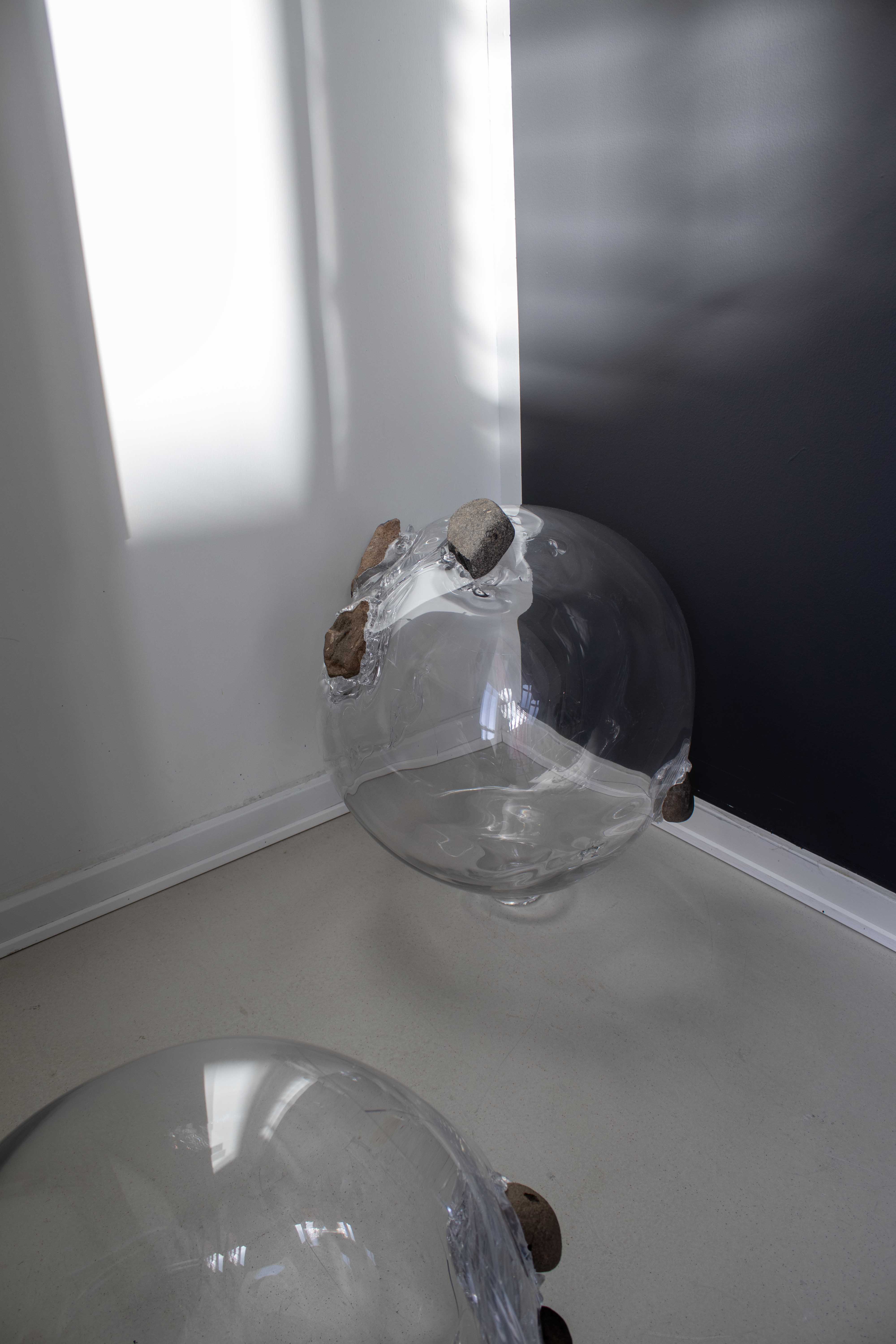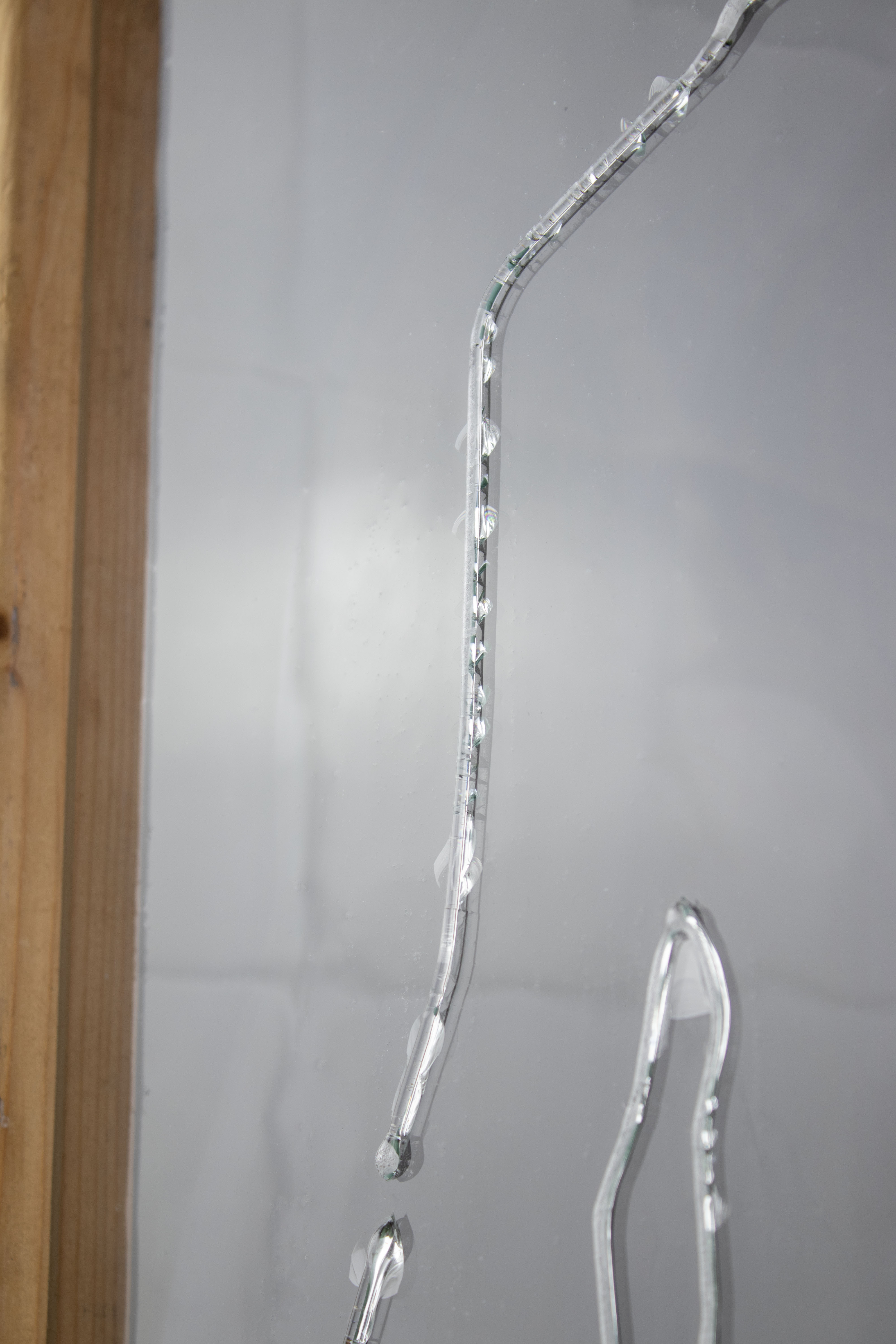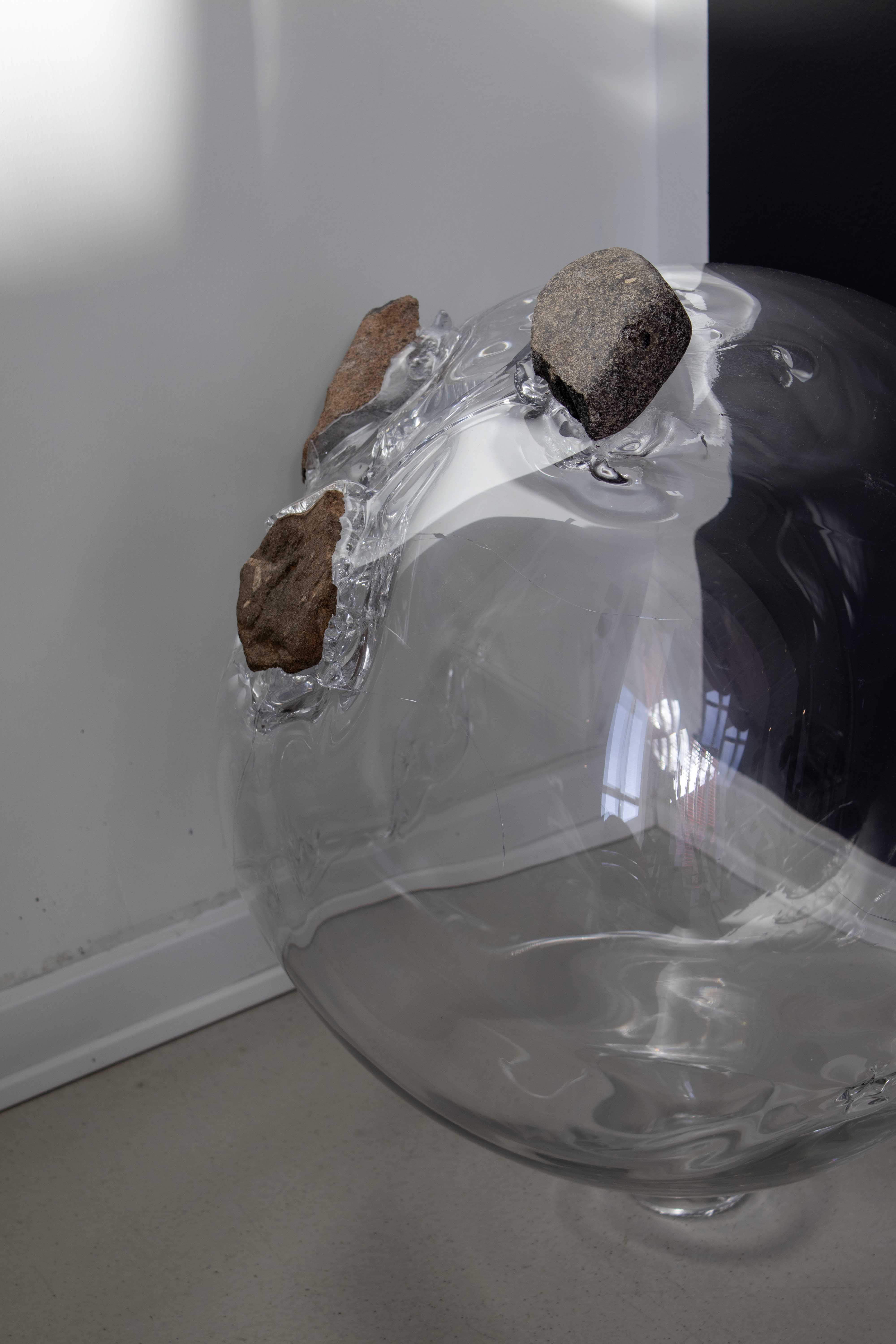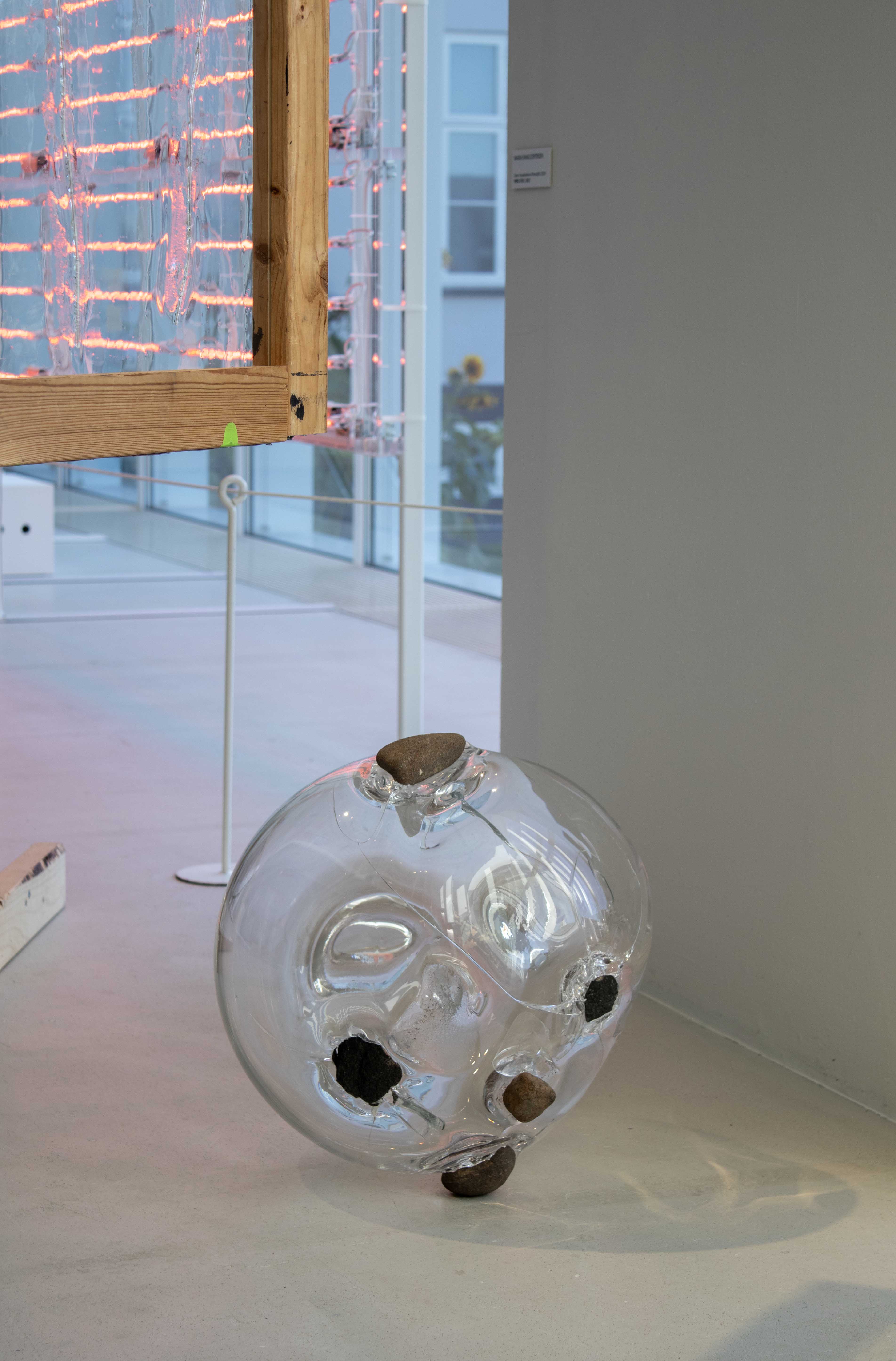 "Maria Bang Espersen challenges the limits of the material by combining glass with incompatible elements. This creates a tension in the glass, which causes it to crack. Her work investigates concepts of strength vs vulnerability and raises questions regarding what is allowed to take up space and what is overlooked or has become invisible."