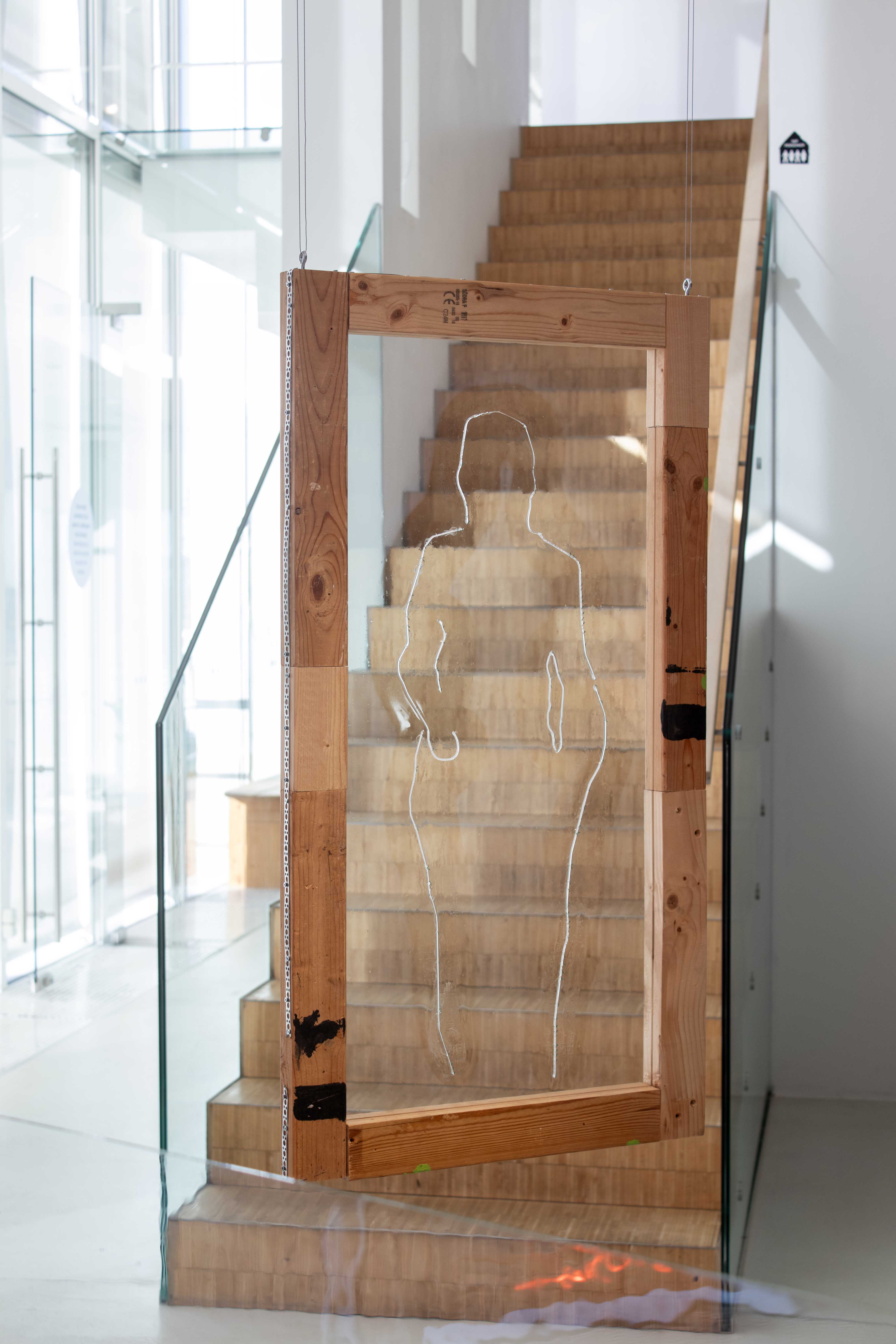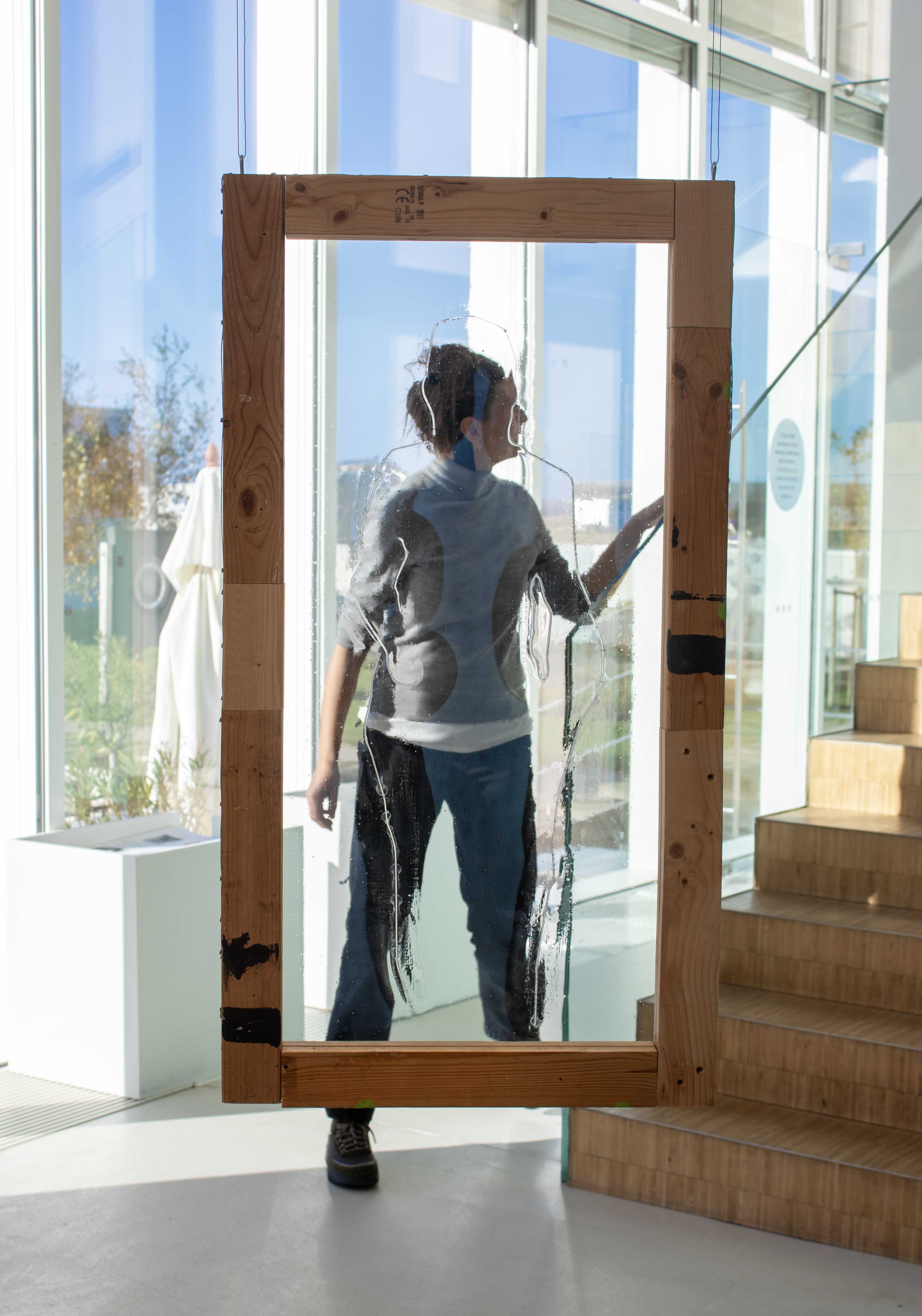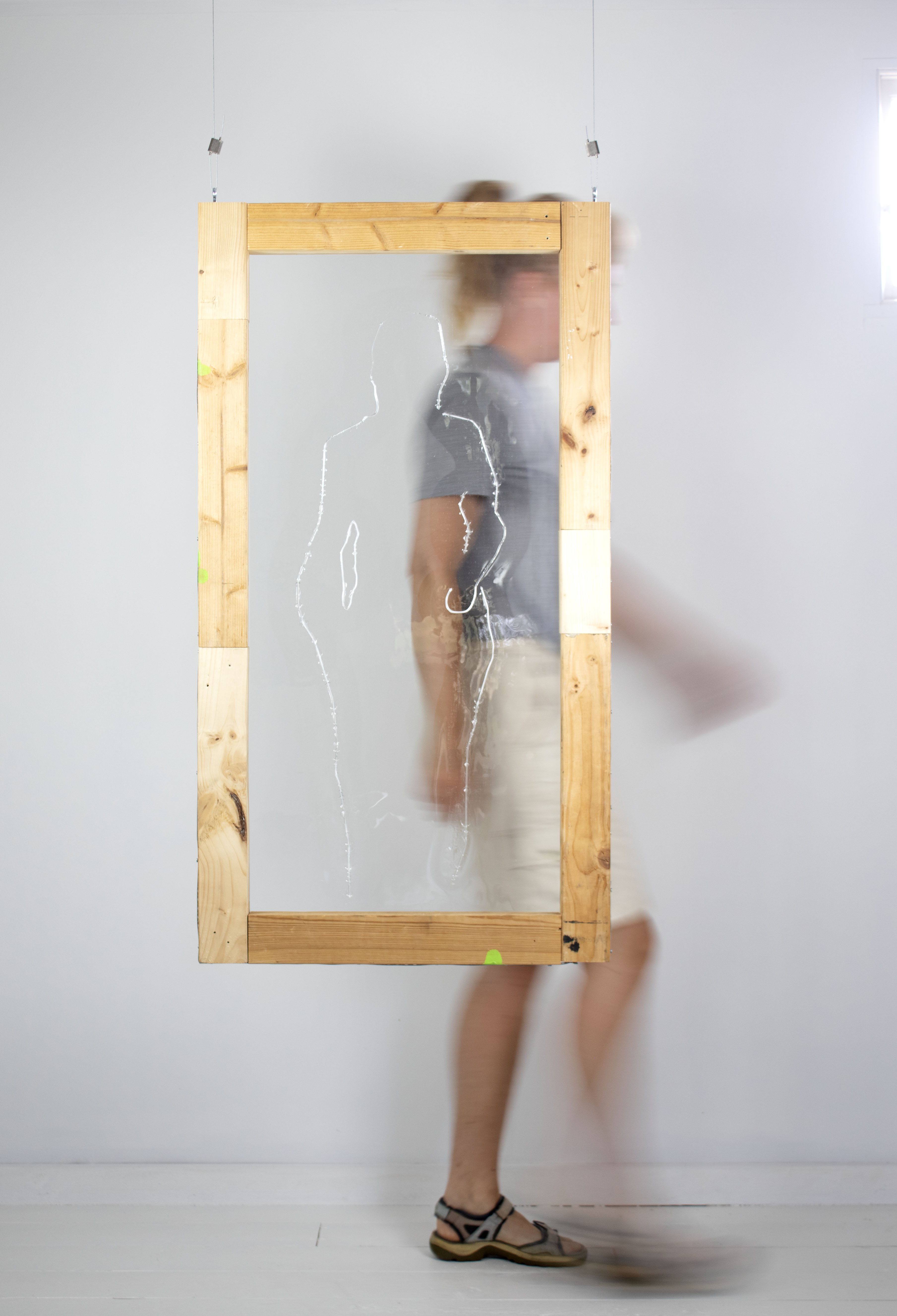 Clear Visualizations (Self Portrait), - 57x106x4,5cm, glass, wood, metal