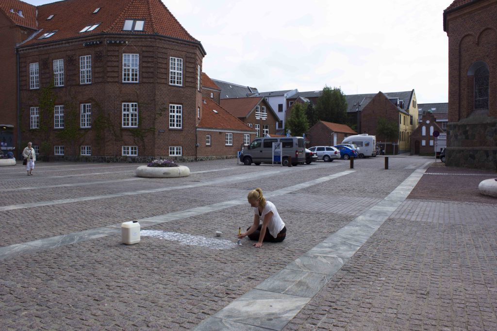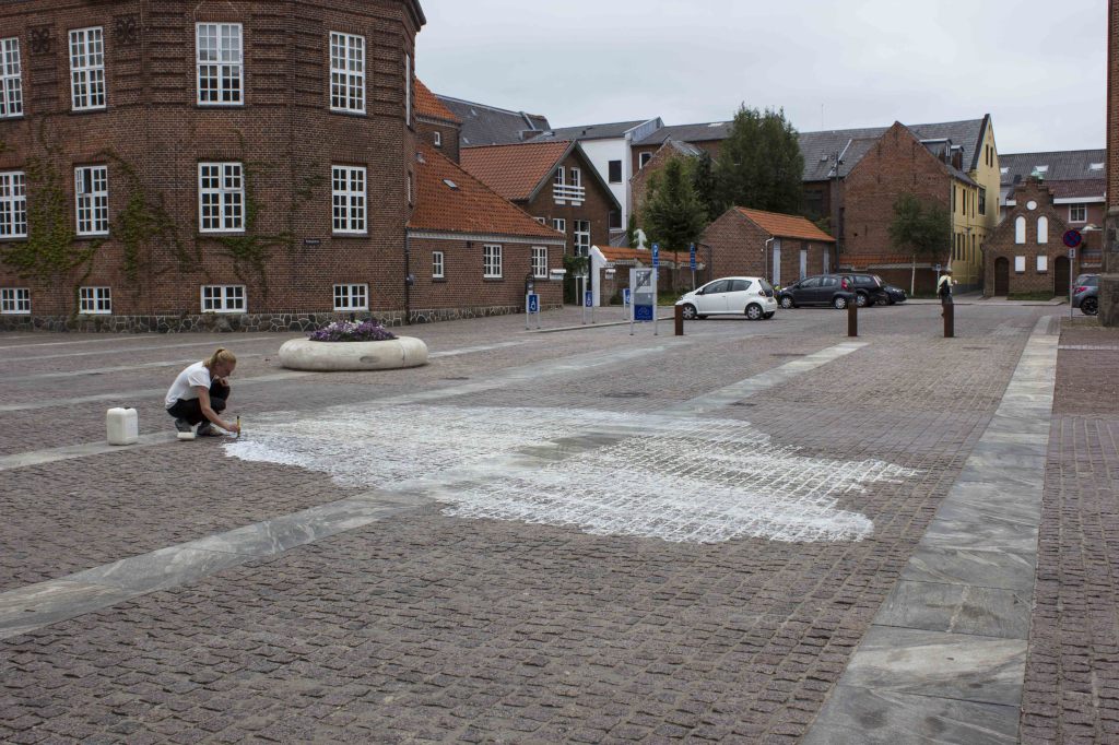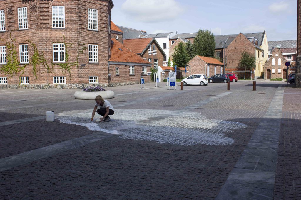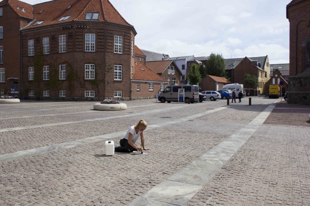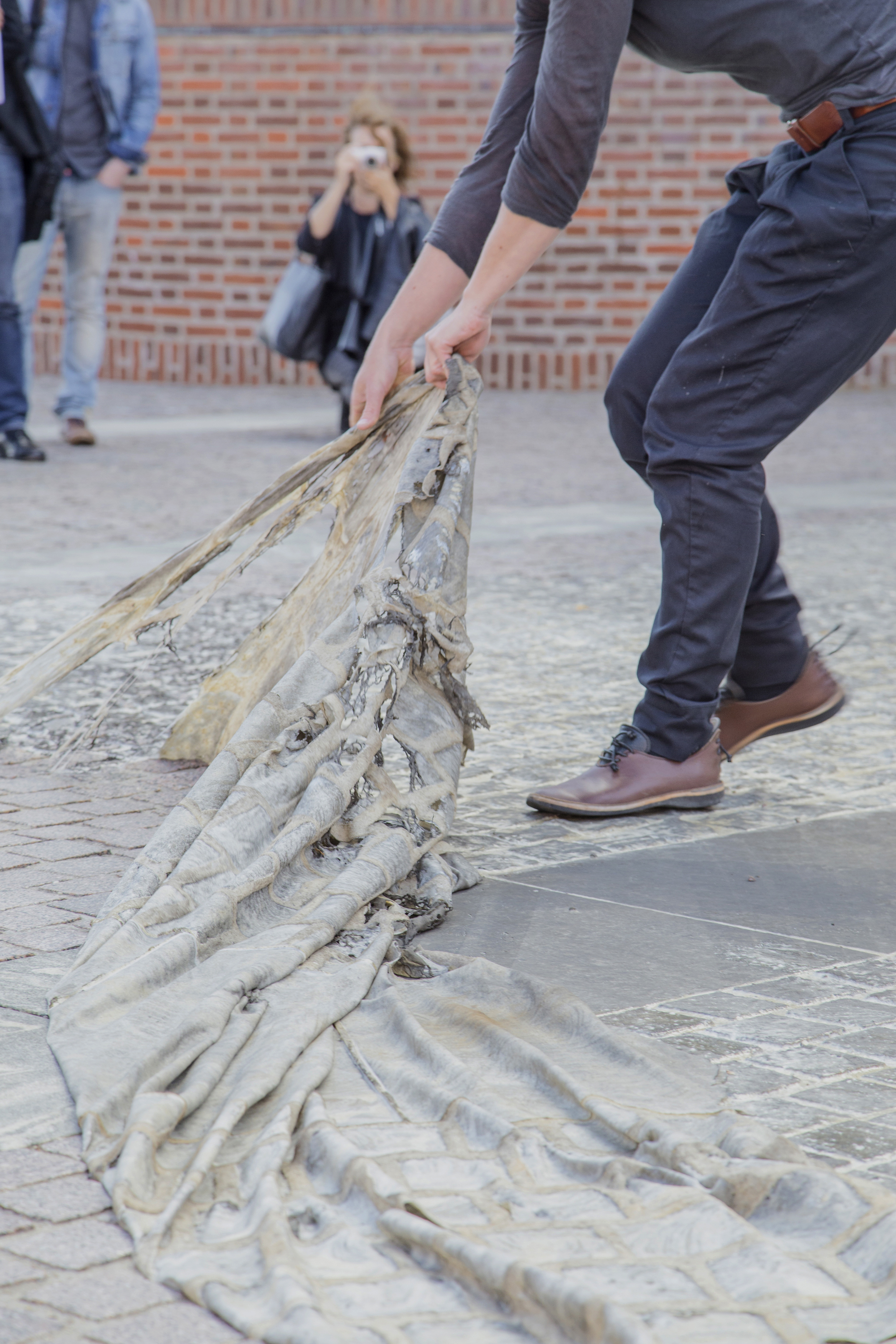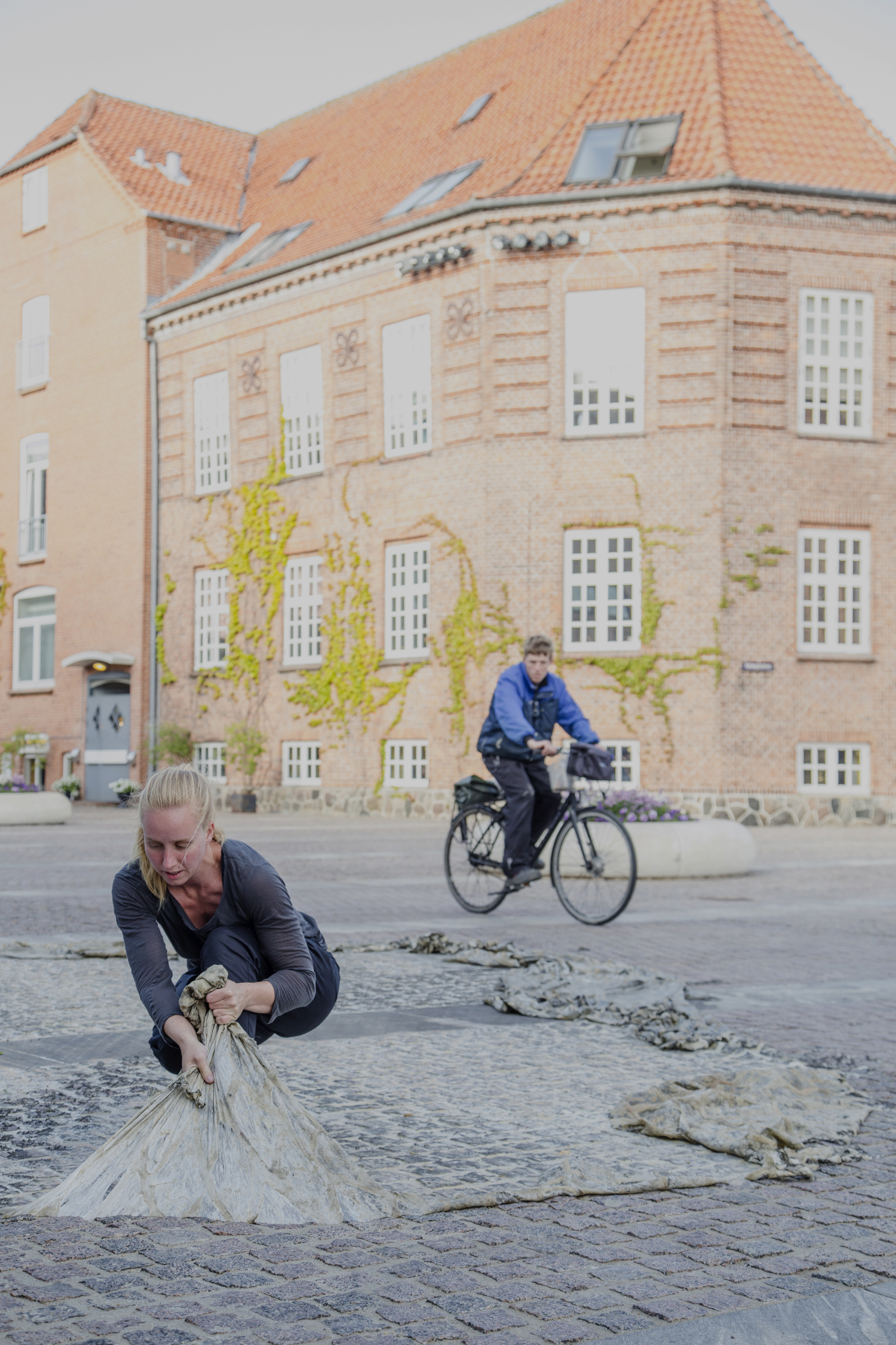 For an art festival in Denmark I spent three days adding layers of liquid latex onto the square of Holstebro Town Hall. On the last day, I pulled the layer off and carried the new imprint with me as I was leaving town once again.