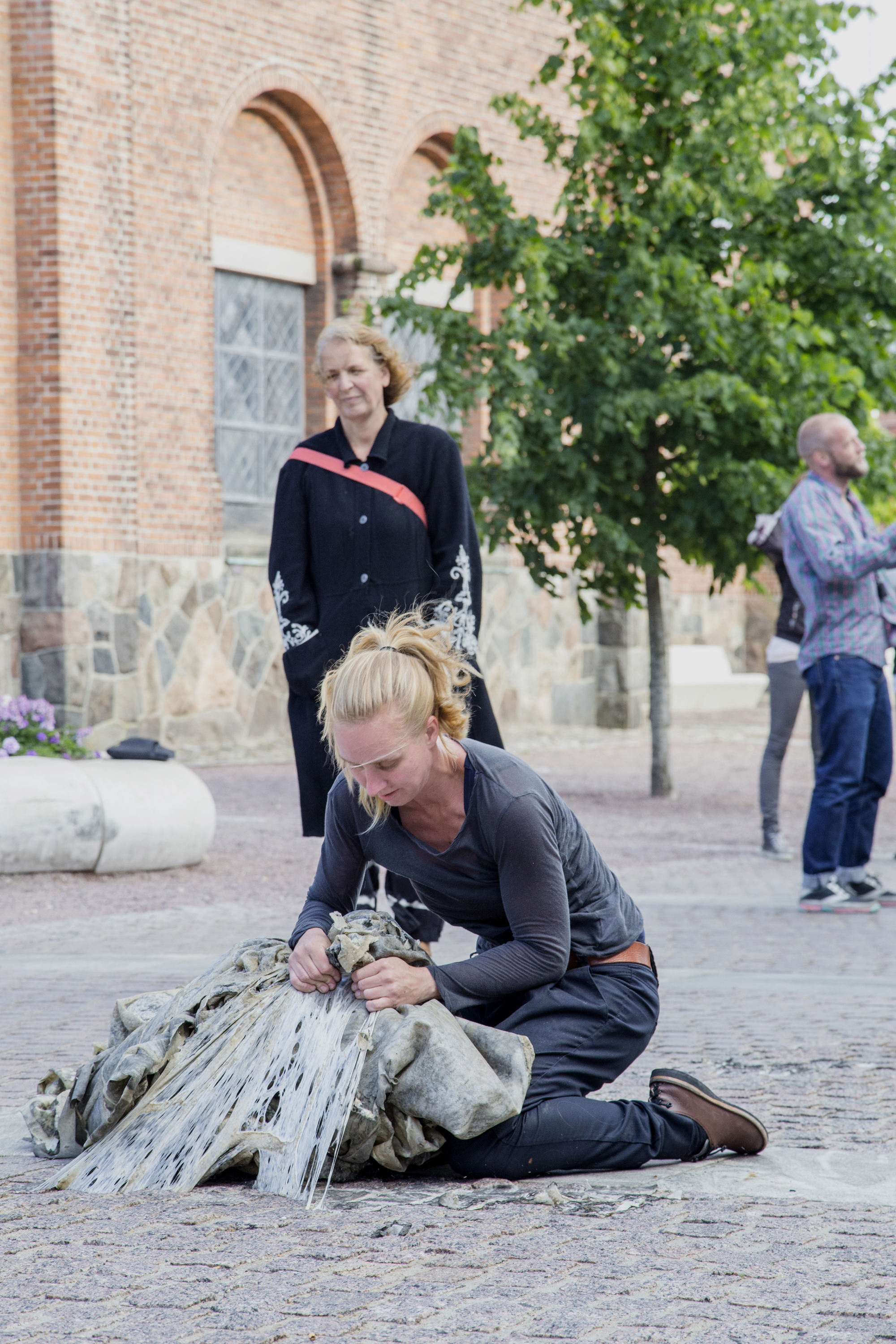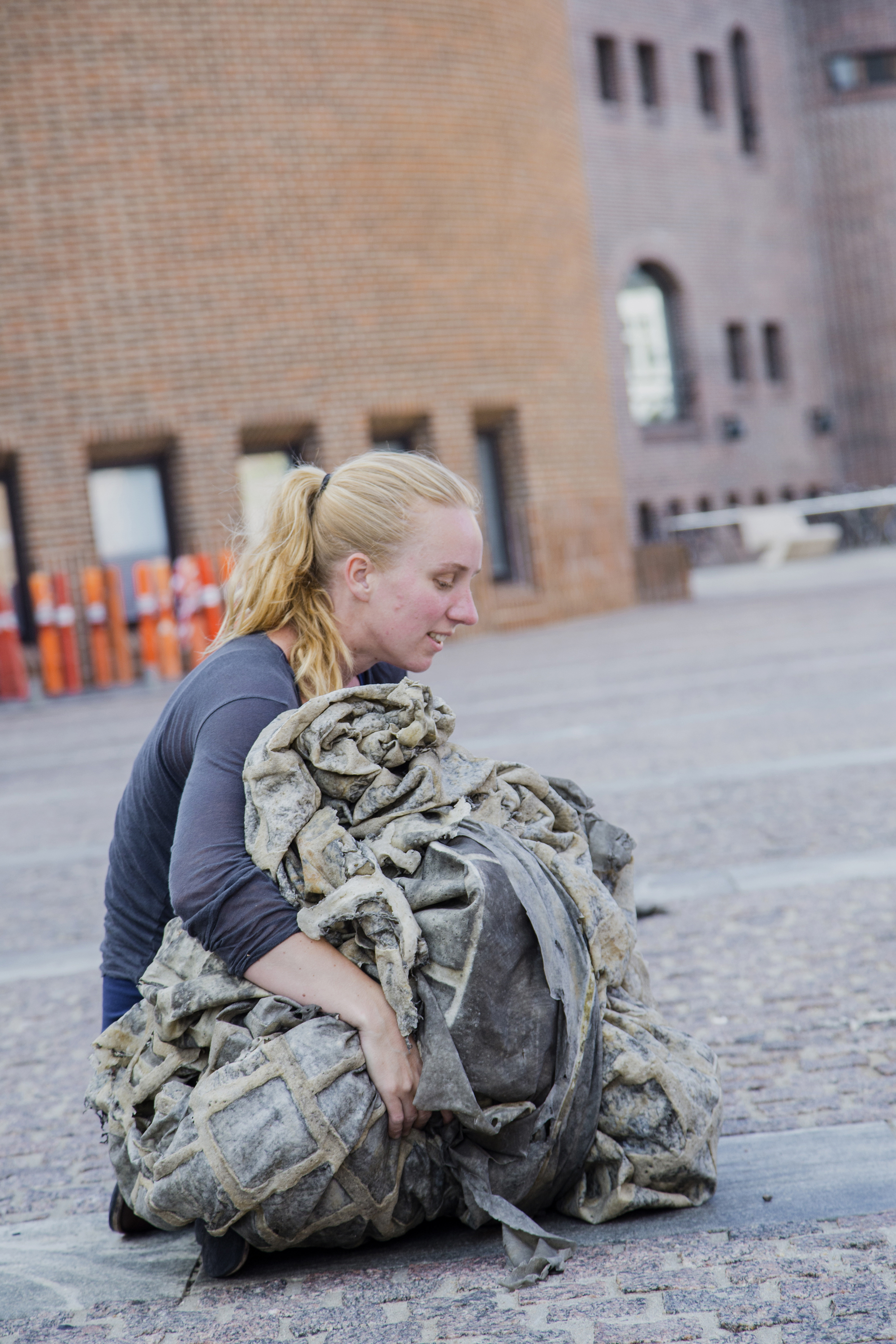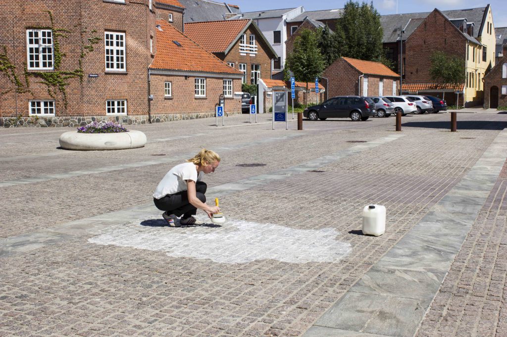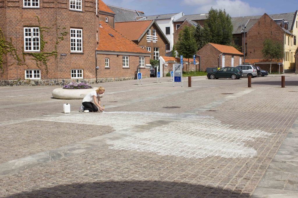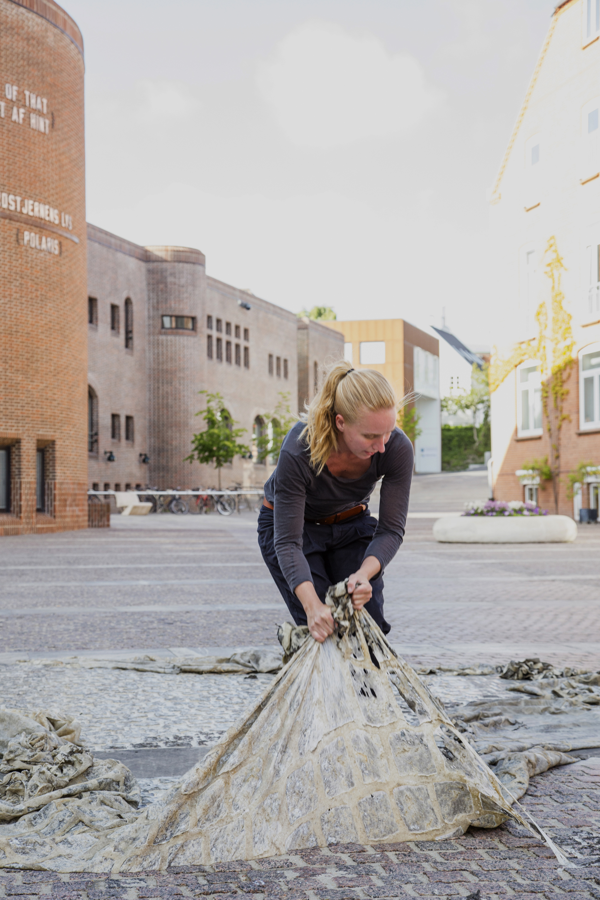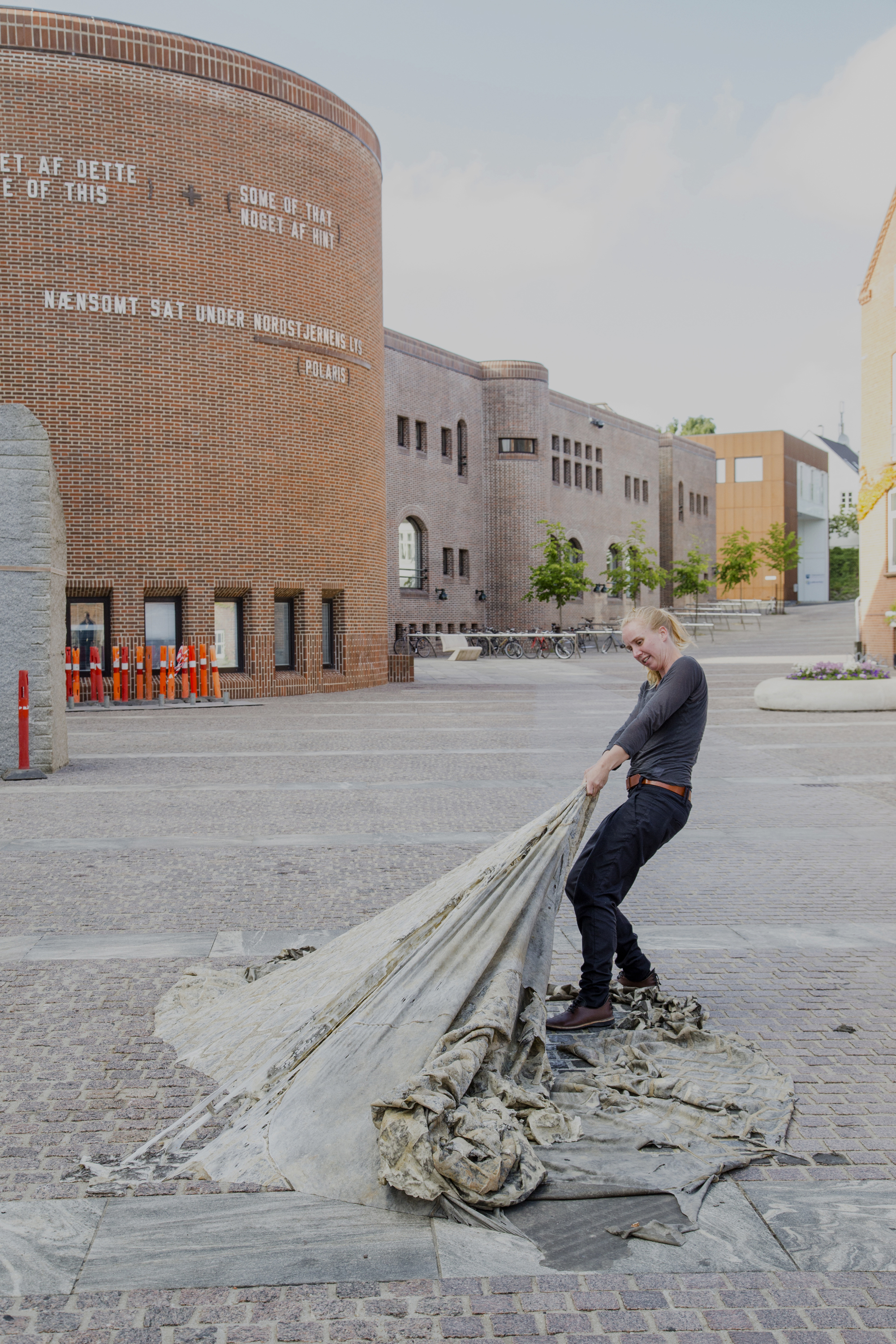For an art festival in Denmark I spent three days adding layers of liquid latex onto the square of Holstebro Town Hall. On the last day, I pulled the layer off and carried the new imprint with me as I was leaving town once again.